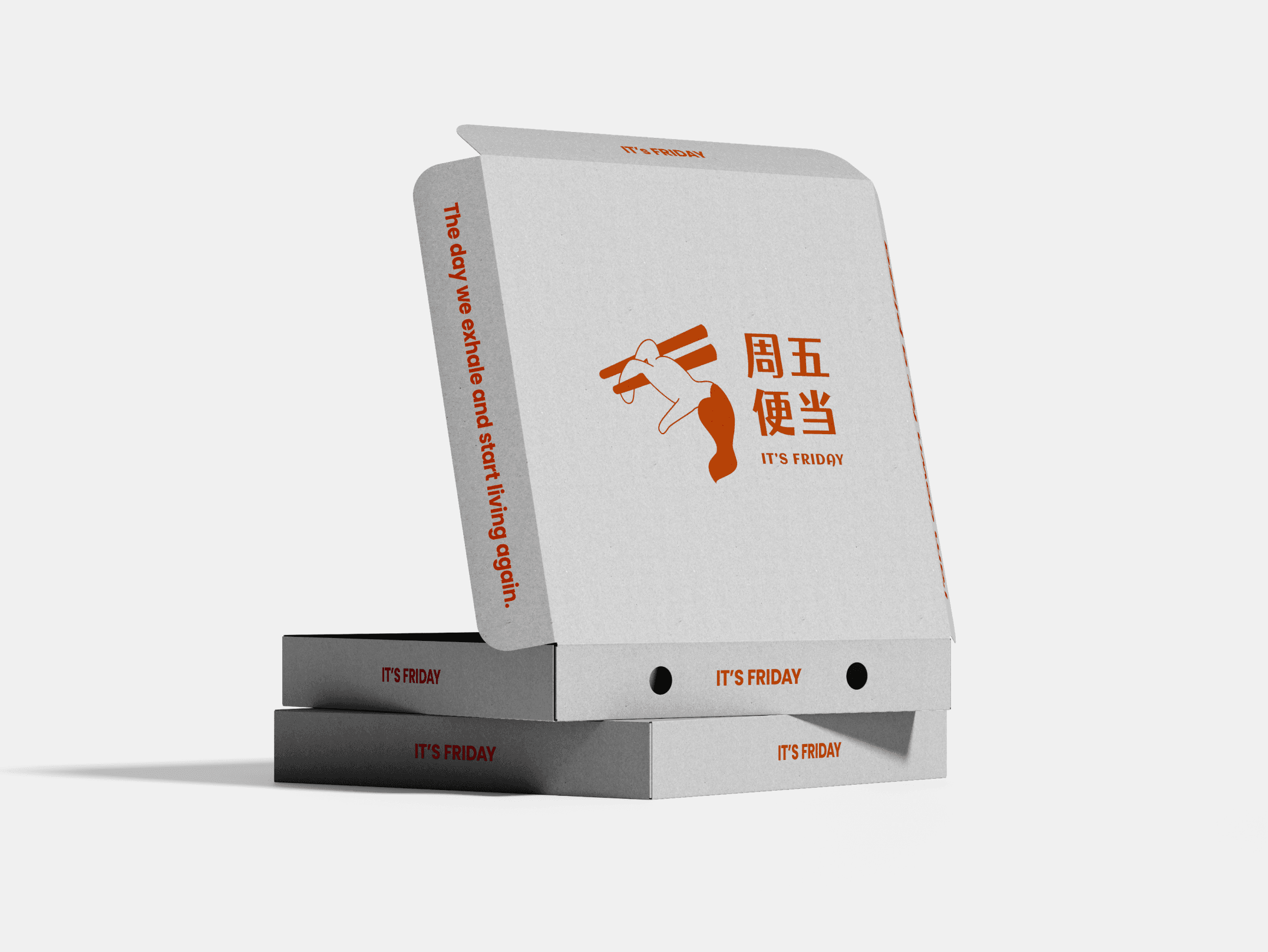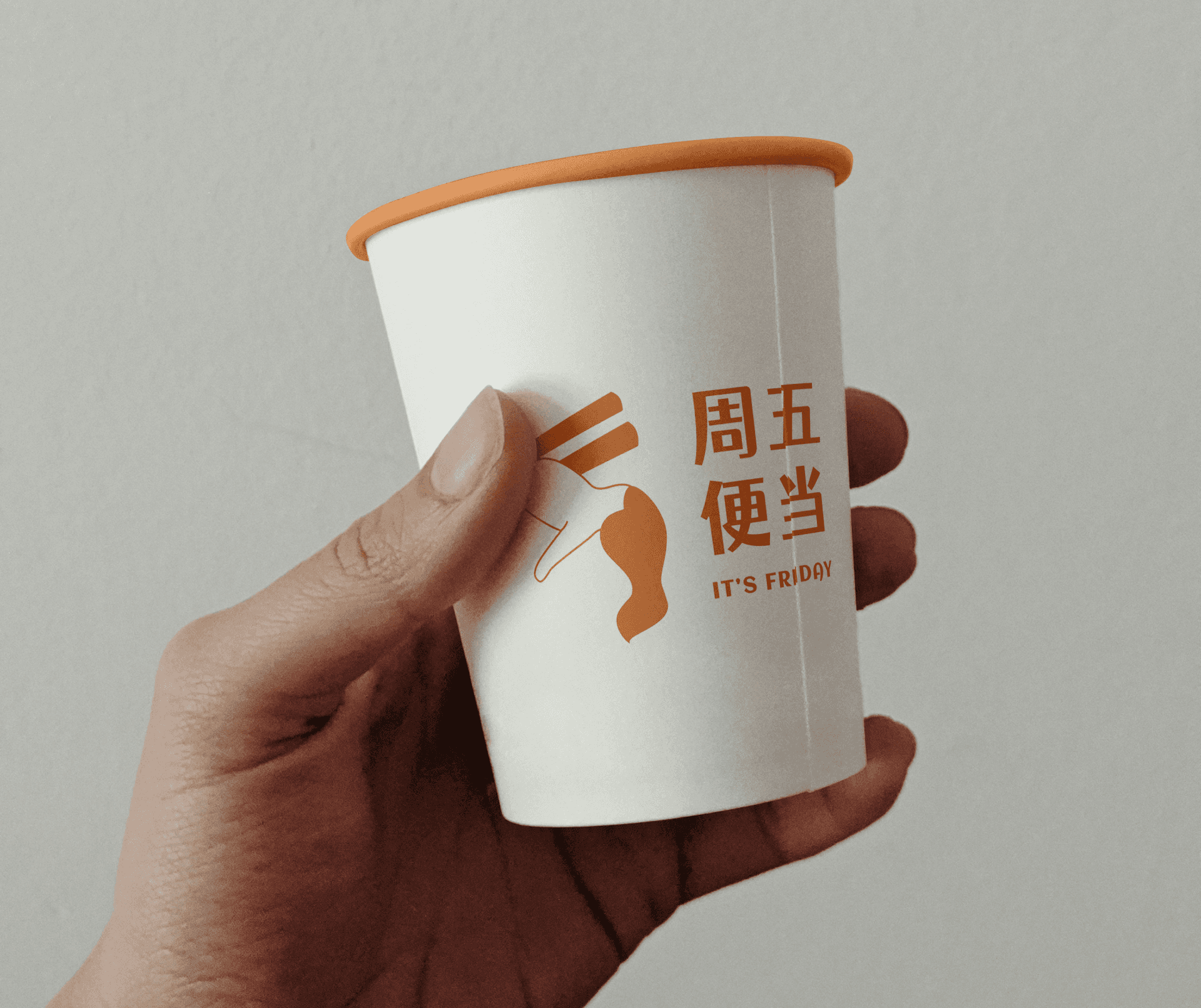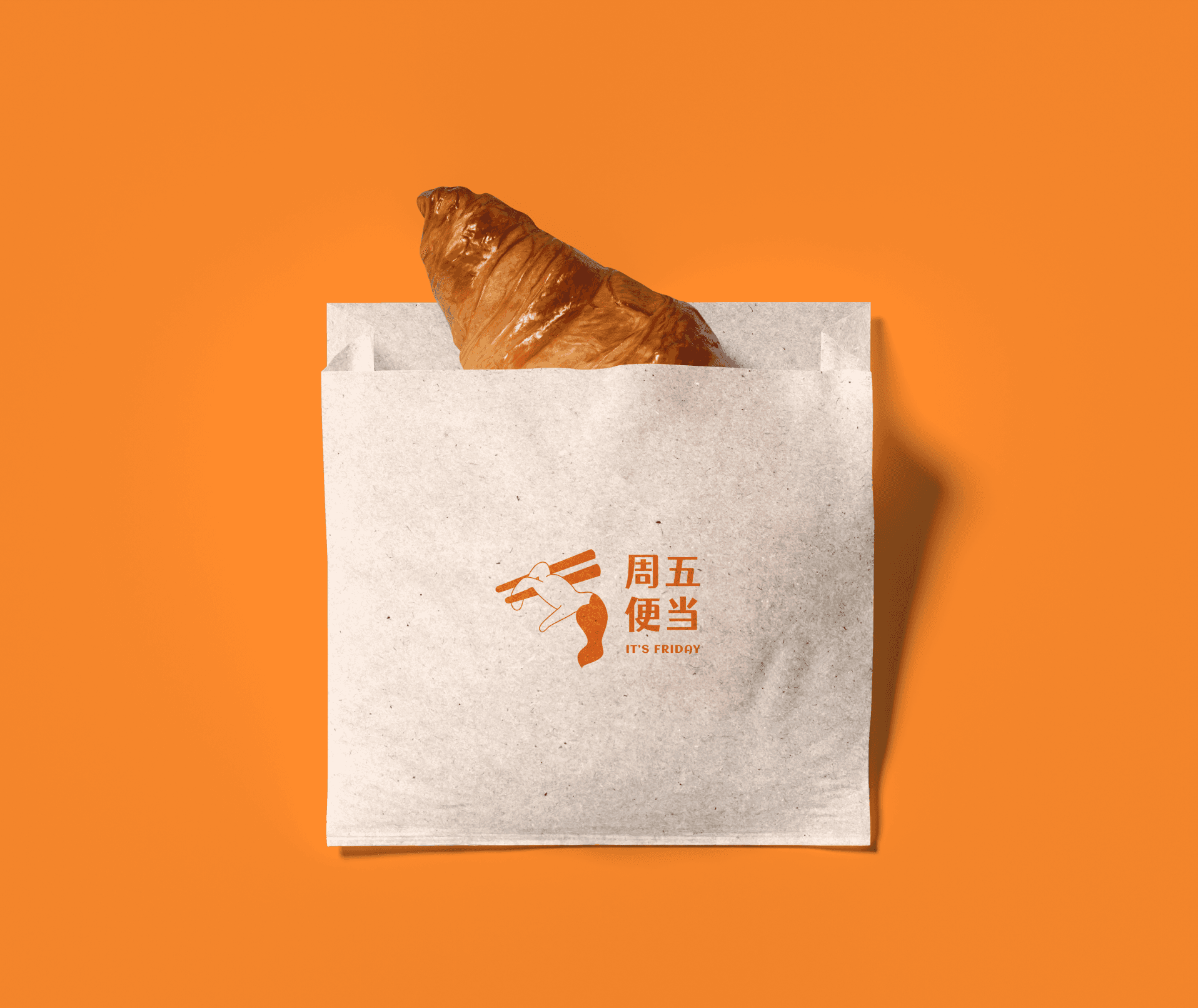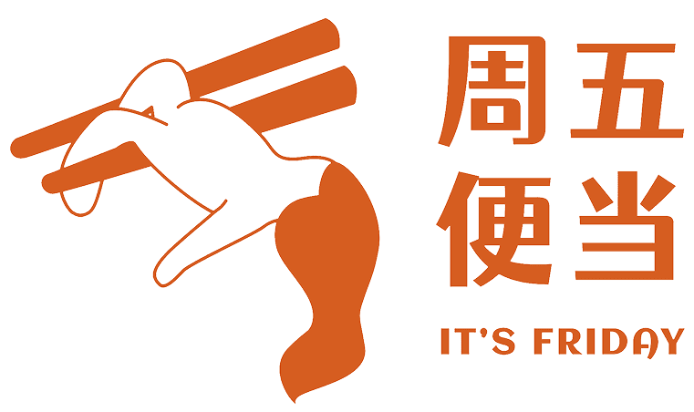 This logo blends playful illustration with bold typography to create a distinct identity for “周五便当 · It’s Friday.” The dynamic pose and clean lines give the brand a lively, energetic feel, while the warm orange tone adds a sense of friendliness and approachability.